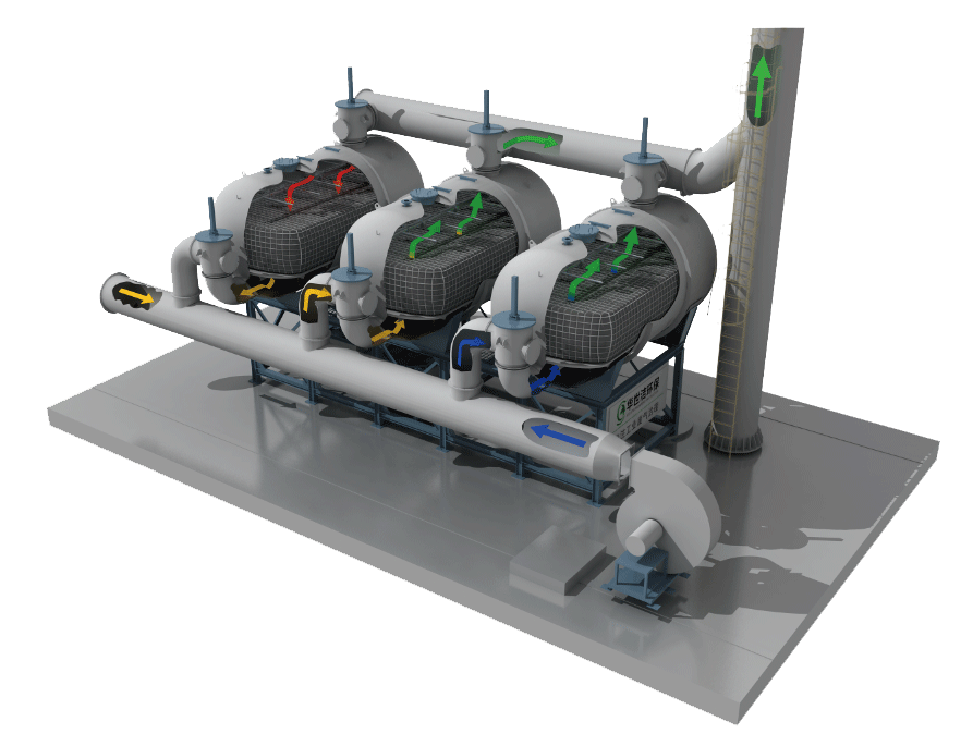 吸附:含VOCs的廢氣穿過吸附劑床層,VOCs被吸附在吸附劑的微孔結(jié)構(gòu)中,干凈的氣體則排入大氣。