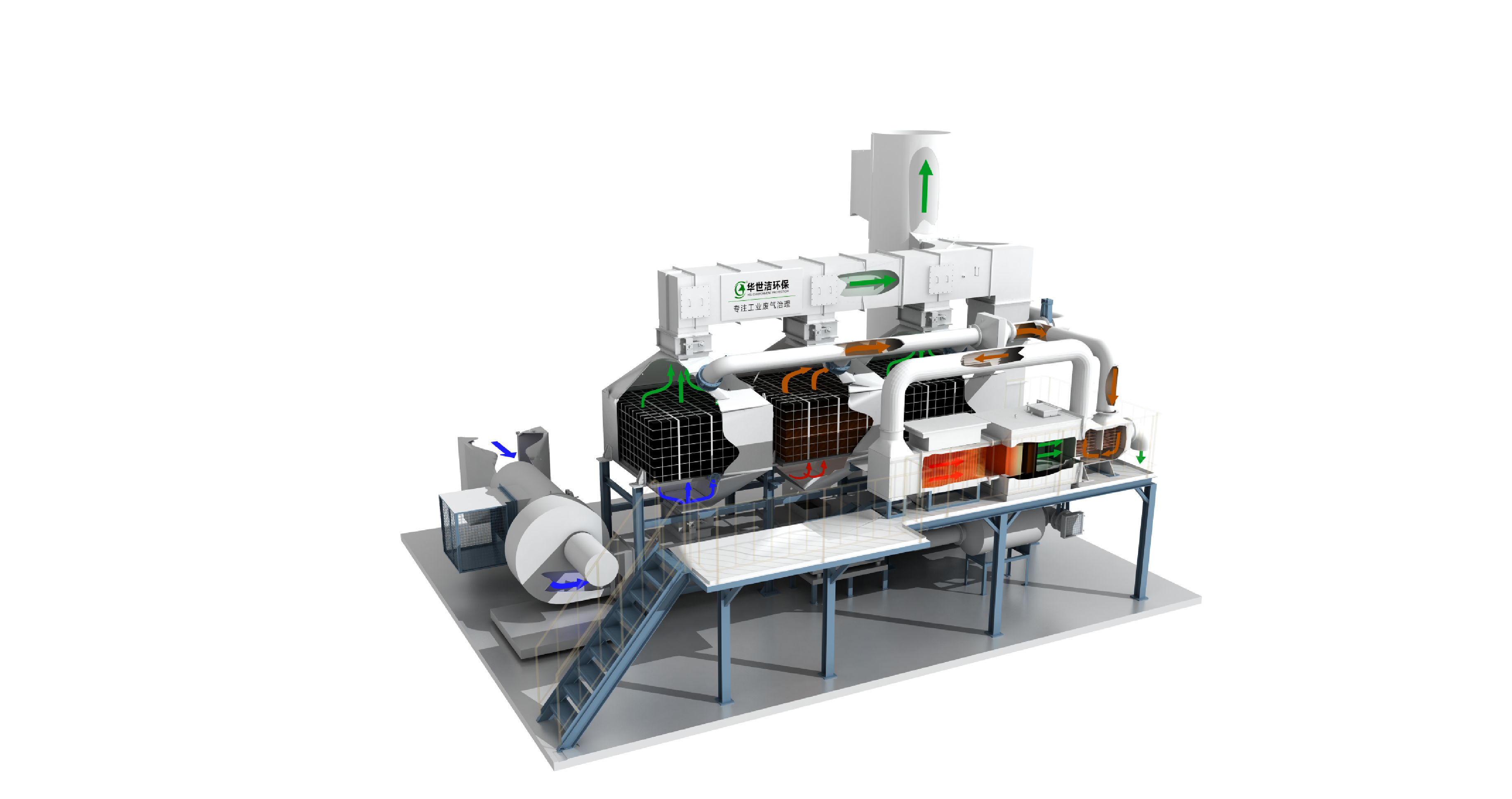 蜂窩活性炭吸附-催化燃燒脫附的原理是利用活性炭吸附性強(qiáng)、有機(jī)溶劑沸點(diǎn)較低的特點(diǎn),先利用活性炭吸附,當(dāng)活性炭吸附達(dá)到飽和后,啟動(dòng)催化燃燒裝置,利用電加熱產(chǎn)生60~120℃左右的少量熱空氣加熱已吸附飽和的活性炭,使活性炭中的有機(jī)溶劑達(dá)到沸點(diǎn)脫附出來(lái),形成濃度較高的有機(jī)廢氣,而后有機(jī)廢氣作為燃料進(jìn)入到催化燃燒裝置中進(jìn)行熱氧化反應(yīng),經(jīng)過(guò)熱氧化反應(yīng),進(jìn)入催化裝置中的高濃度廢氣變成潔凈無(wú)害的氣體直接排放,或者進(jìn)入換熱裝置,在換熱裝置內(nèi)對(duì)活性炭中脫附出來(lái)的高濃度廢氣進(jìn)行預(yù)熱,使之達(dá)到接近熱氧化的溫度,而后在進(jìn)入催化燃燒裝置內(nèi)進(jìn)行熱氧化反應(yīng),如此只需電加熱器提供少量的熱量即可達(dá)到熱氧化溫度,降低了催化燃燒裝置電加熱器的功率,使催化燃燒裝置及活性炭脫附的過(guò)程達(dá)到小功率運(yùn)行,降低了運(yùn)行成本。